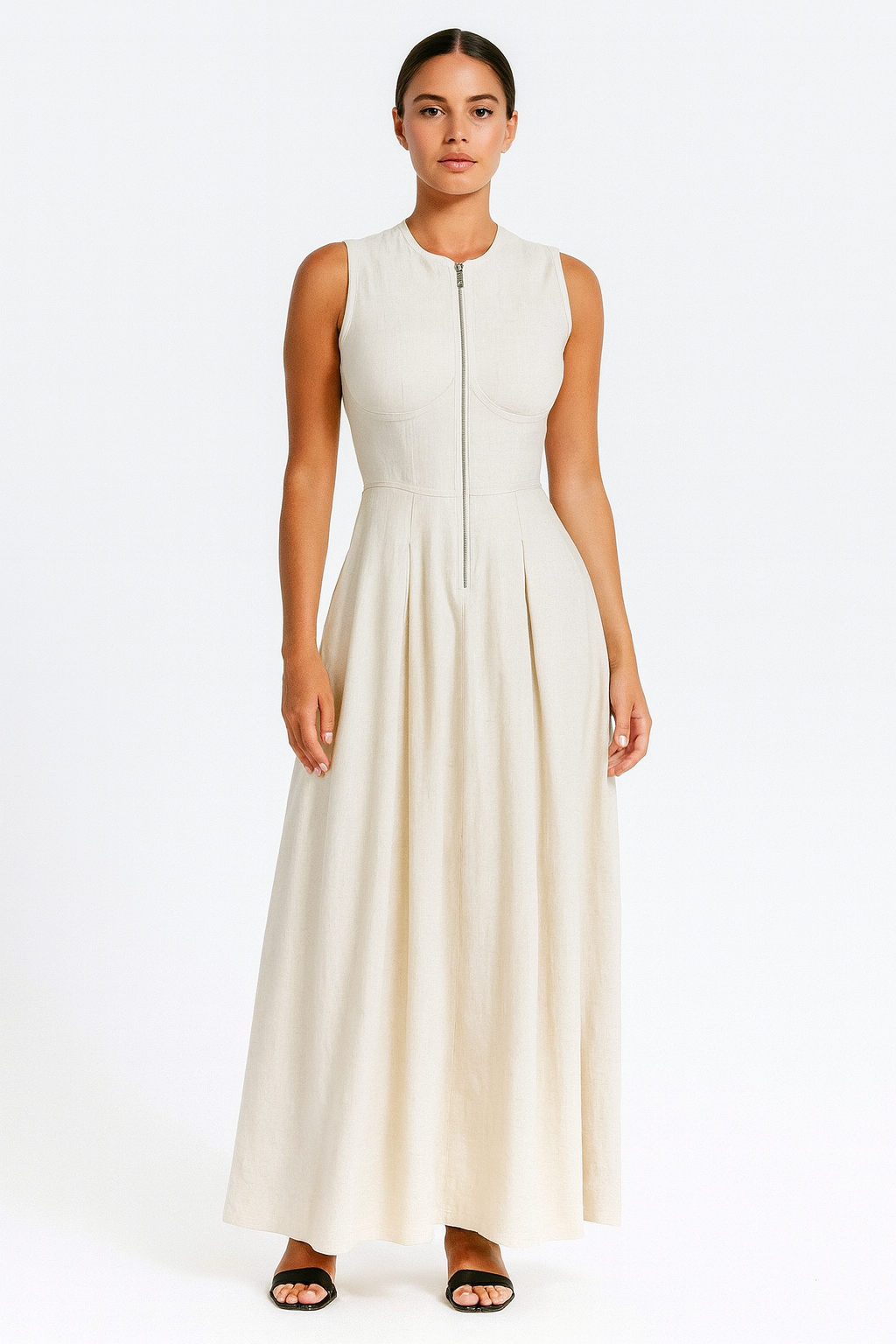 • Design sem mangas que valoriza os ombros e traz frescor para o verão.